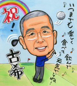 車入り還暦祝いの似顔絵